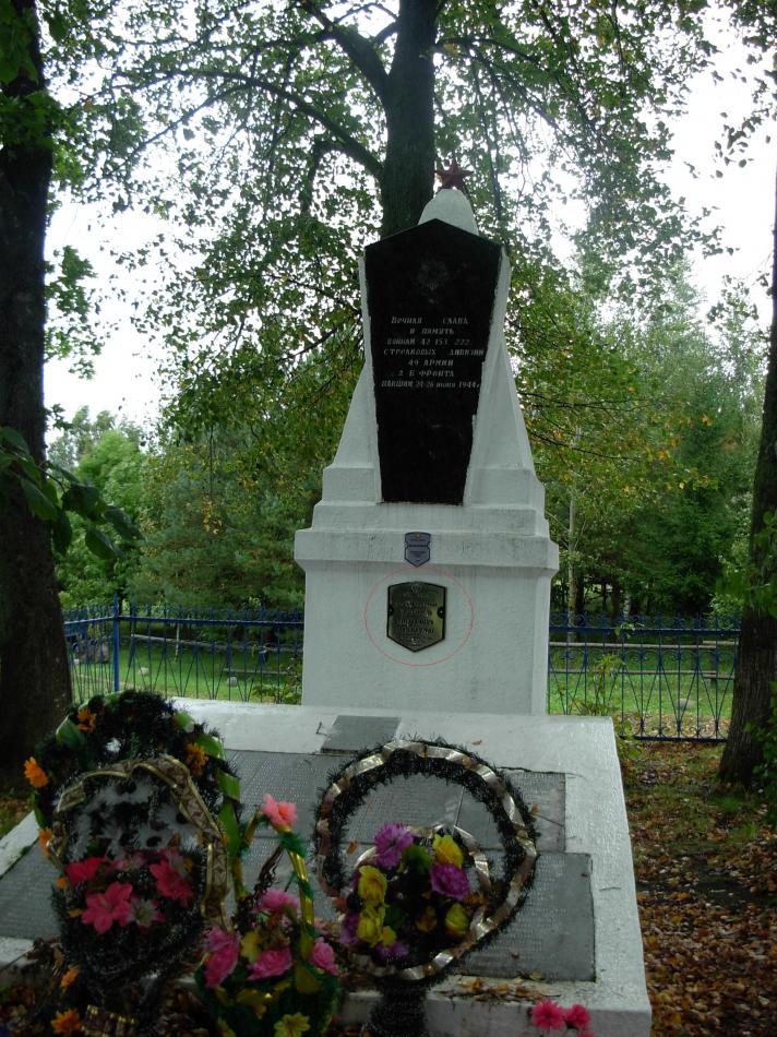 Братская могила в г.п. Дрибин. Памятник истории 3 категории. Братская могила находится на перекрестке улицы Ленина и Темнолесской. В могиле захоронены воины и партизаны, которые погибли при освобождении Дрибина в 1943 году в боях против немецко-фашистских оккупантов. Среди захороненных воины 70-й и 222-й стрелковых дивизий. В 1984 году на могиле возведен памятник – скульптура воина с автоматом, вокруг – стелы с именами погибших воинов и земляков.